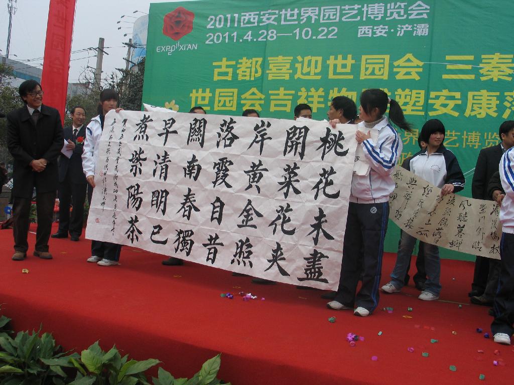 揭幕仪式前,市上组织了丰富多彩的文艺演出和书画表演,我院学生也纷纷登台演唱,共同为吉祥物“长安花”落地安康增添欢庆气氛。希望借助学生热情参与,把吉祥如意与盛情邀请传递到大学校园,使我院广大学生更加了解西安世园会、关注西安世园会、参与西安世园会。