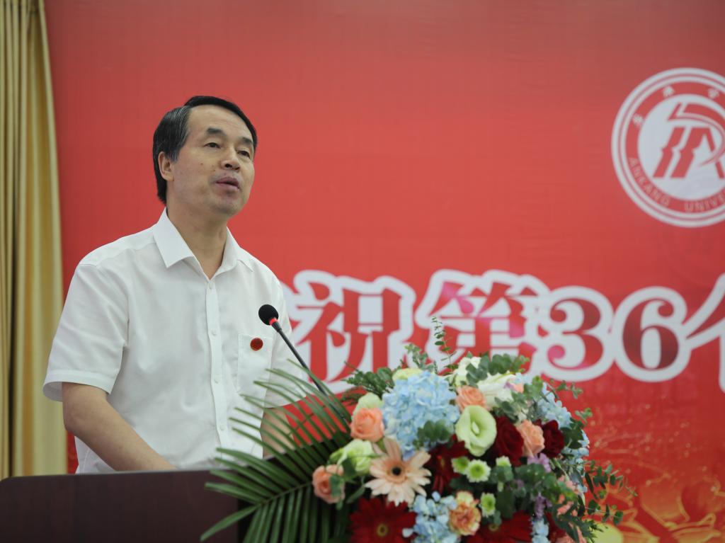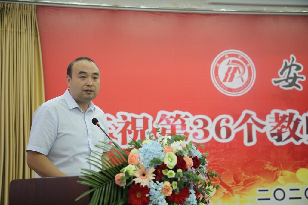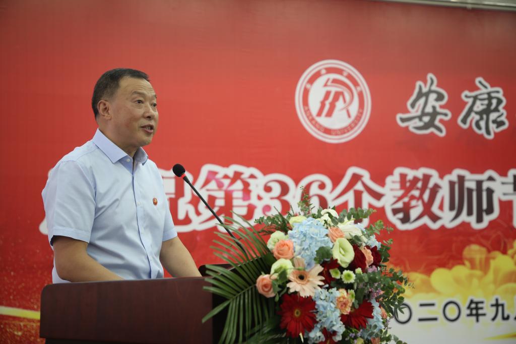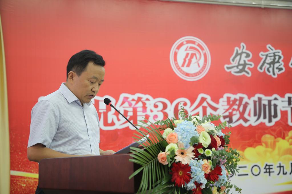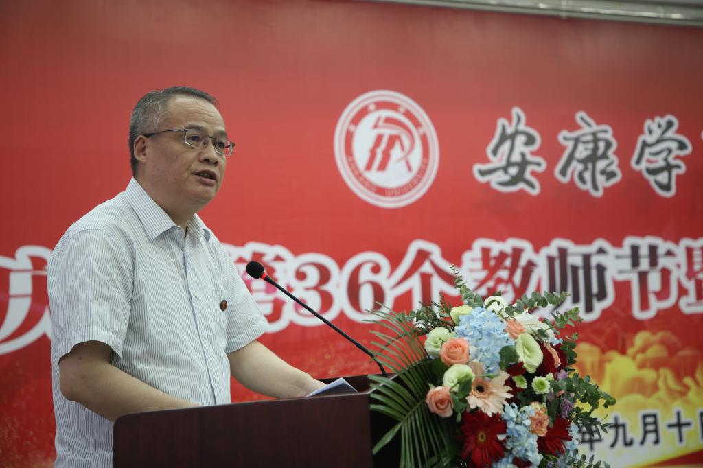 王国良代表学校党委,向为学校发展倾注智慧和心血的全校教职员工致以节日的问候,向受到表彰的先进集体和个人表示祝贺,向离退休老同志致以崇高的敬意!他结合学习习近平总书记关于教育工作重要论述的思考,就如何当一名新时代高校好老师、如何尊重服务老师,谈了三点体会:一是坚守立德树人信念,忠诚党的教育事业。作为中国特色社会主义大学的教师,要始终忠诚于党的教育事业,自觉做中国特色社会主义的坚定信仰者、积极传播者和忠实践行者,引领青年学子在正确的道路上健康成长成才。二是立足本职潜心教学科研,助力学校快速发展。作为我校教师,应遵循教育教学规律和学生成长规律,潜心学术研究,多出高质量研究成果,不断提升学校应用型人才培养质量。三是尊重服务教师,全心全意促进教师发展。管理服务人员要将服务教师和学生的工作理念落实到一言一行当中,用真心、真情做好工作,凸显“学校办学、教师为本;教育教学,学生为本”的教育理念。