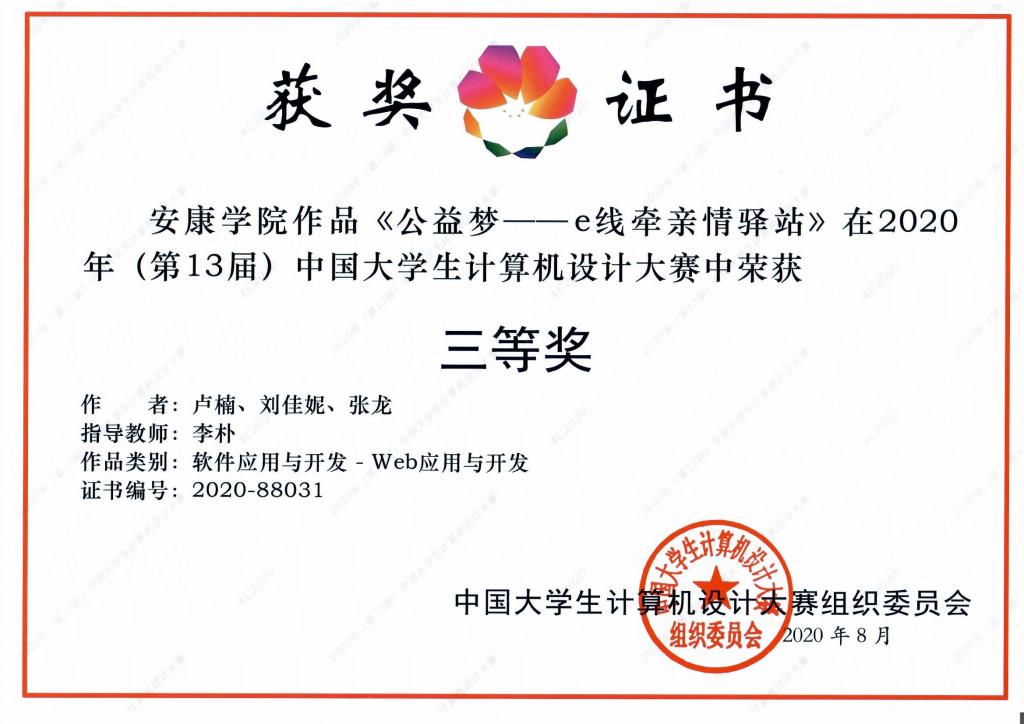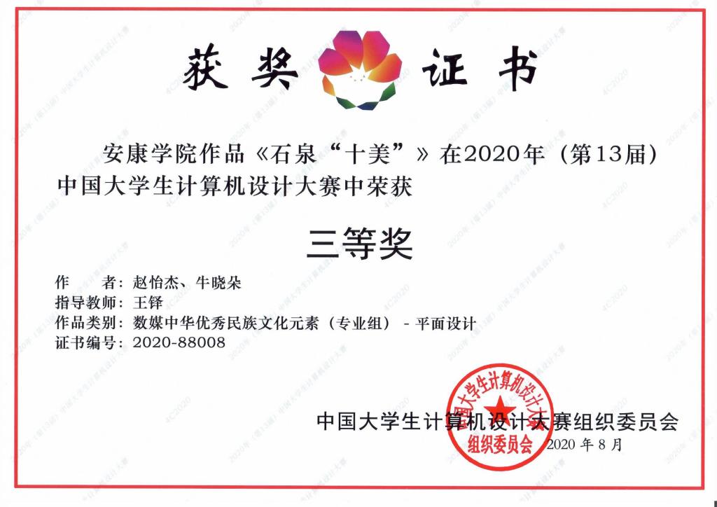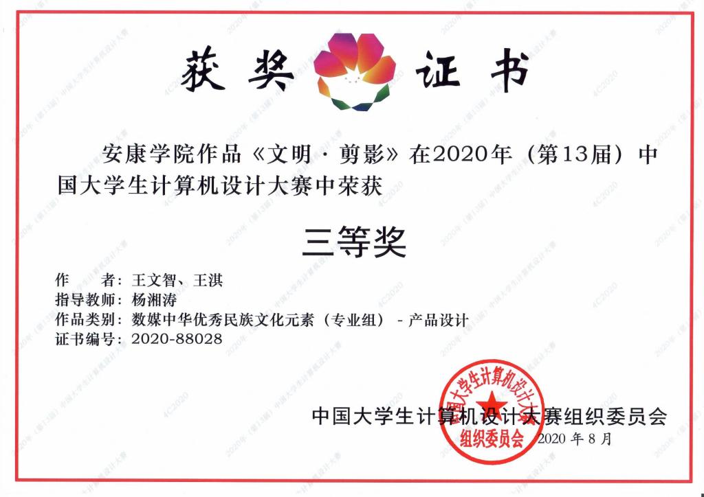 近日,2020年第十三届中国大学生计算机设计大赛落下帷幕,来自全国70余所高校4646件作品参加决赛。经过激烈角逐,我校《公益梦-e线牵亲情驿站》《文化剪影》等6支队伍荣获三等奖6项,获奖作品涵盖软件开发与应用、物联网应用、数媒中华优秀民族文化元素(专业组)三个大类,国赛获奖数量再创新高。我校获省级优秀组织奖。