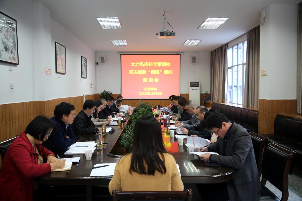 10月8日下午,我校在江南校区第一会议室召开弘扬科学家精神及破除“四唯”问题精神座谈会,校长丁巨涛,副校长余谦,科研处、人事处、教务处等部门负责人,各二级学院分管科研副院长参加了会议。