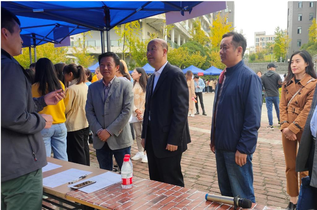 为认真做好“六稳”工作,落实“六保”任务,推进实习、就业一体化,实现人才培养目标,在疫情防控常态化下积极搭建用人单位与毕业生双向选择洽谈平台,促进2021届毕业生多渠道、高质量、更充分就业,10月9日下午,我校在江北校区成功举办2021届秋季校园现场招聘活动——旅游环境类专场招聘会。我校招就处处长丁义国、副处长郑武斌,来自省内外30余家用人单位代表,旅环学院领导、教师及2021届全体毕业生出席开幕式。旅环学院党总支书记张立虎主持开幕式,副院长储玖琳及用人单位代表分别致辞。