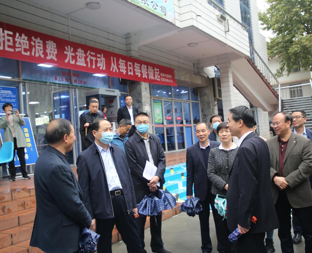 10月14日下午,省人大常委会科教文卫工作委员会副主任钱远刚、市人大常委会副主任马孝芳一行来我校就“珍惜粮食、反对浪费”开展专题调研。学校党委书记王国良,党委副书记胡波、杨行玉陪同调研。