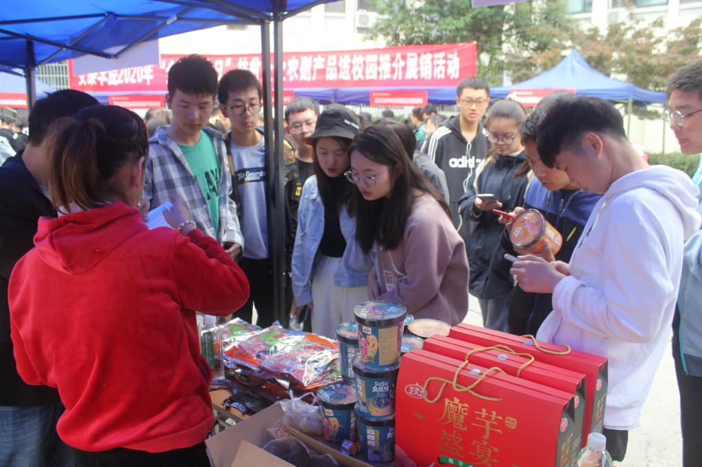 启动仪式结束后,“安康学院2020年扶贫企业农副产品进校园推介展销”活动正式开始。由“双百工程”工作队联系的岚皋县、白河县12家企业参加了展销活动。在活动现场,帮扶企业通过现场销售、直播带货等方式,宣传帮扶贫困县的茶叶、木瓜、果酒、、魔芋等农副产品,深受师生欢迎,产品销售火爆,当天创下11000余元的销售额。