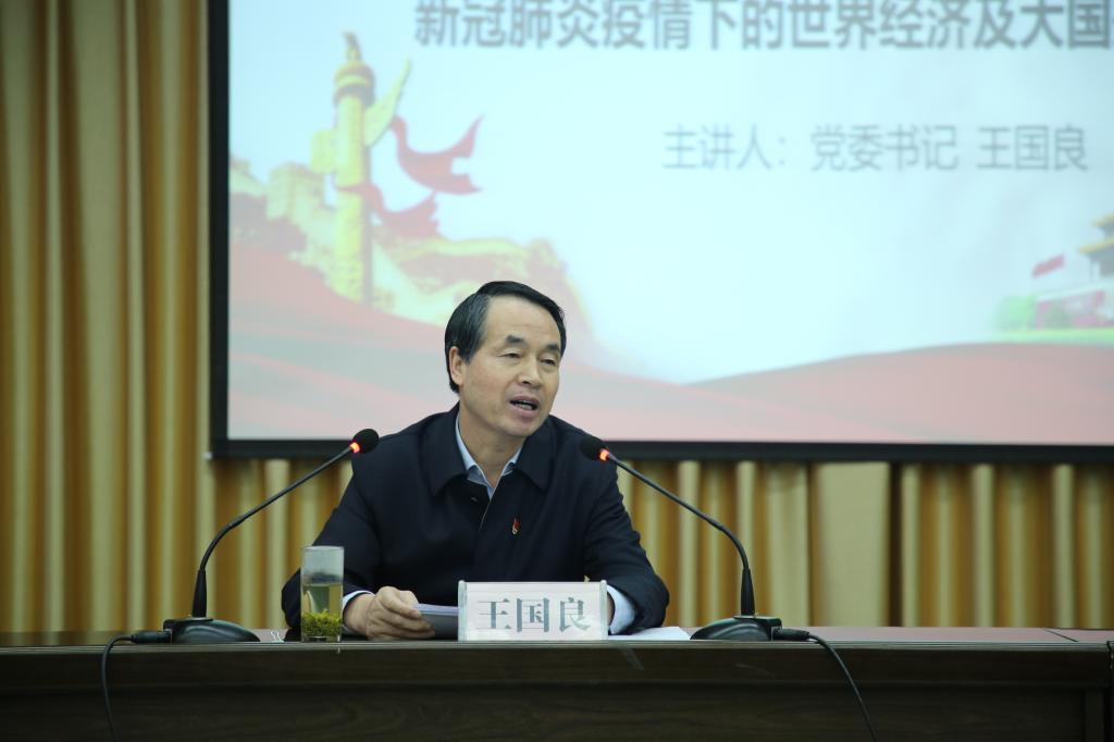 10月28日下午,学校党委书记王国良在图书馆六楼报告厅为文传学院师生和直属二党支部全体党员讲授题为“新冠肺炎疫情下的世界经济及大国关系”的形势与政策课、党课。学习会议由文传学院党总支书记芦伟主持。