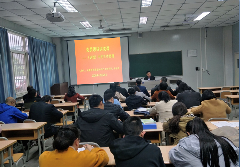 为进一步贯彻落实习近平总书记系列重要讲话精神和全国、全省高校思想政治工作会议精神,增强全体党员教师党风廉政和纪律意识,加强师德师风建设,10月28日下午我校党委副书记、纪委书记、监察专员安永强为马克思主义学院、医学院、纪委全体党员教师上了一堂生动的廉政文化课——《<论语>中的工作哲理》。