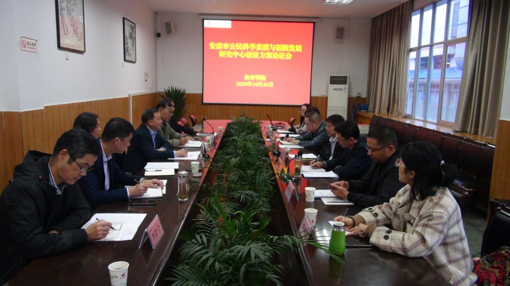 10月28日下午,安康市公民科学素质与创新发展研究中心方案论证会在我校江南校区第一会议室召开。安康市科协副主席杨高、秘书长叶荣斌、我校党委副书记胡波出席会议,科研处、教育学院相关人员参加了本次论证会。
