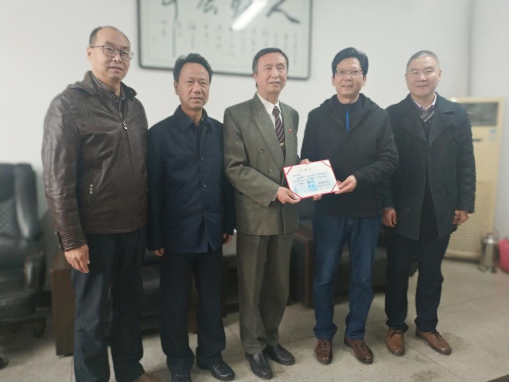 金华峰馆长(右二)向卢新华教授胞弟卢晓华先生(右三)回赠捐赠证书