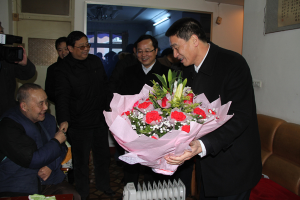 1月28日上午,市委书记刘建明带领市委常委市委秘书长马赟、市教育局局长马恒昌等人,在我院院长王兴林、院党委副书记胡鸿晓陪同下,看望我院退休老教师、省级劳模、原安康师专名誉校长许卜年。