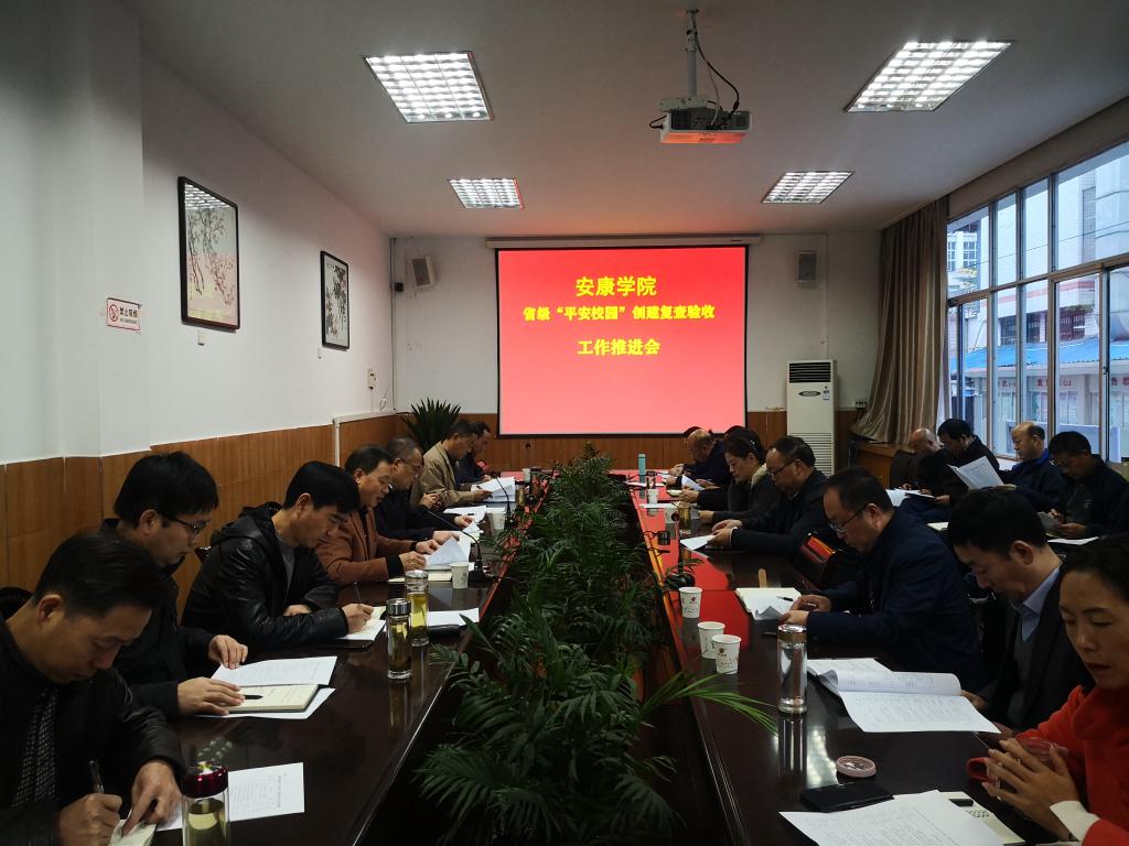 为贯彻落实中共陕西省委教育工委、陕西省教育厅关于《陕西省教育系统“平安校园”创建活动实施办法》的通知,11月12日上午我校在江南校区第一会议室召开省级“平安校园”创建复查验收工作推进会。校长丁巨涛,党委副书记胡波、杨行玉,各二级单位负责人出席会议。丁巨涛校长做要求讲话,会议由杨行玉副书记主持。