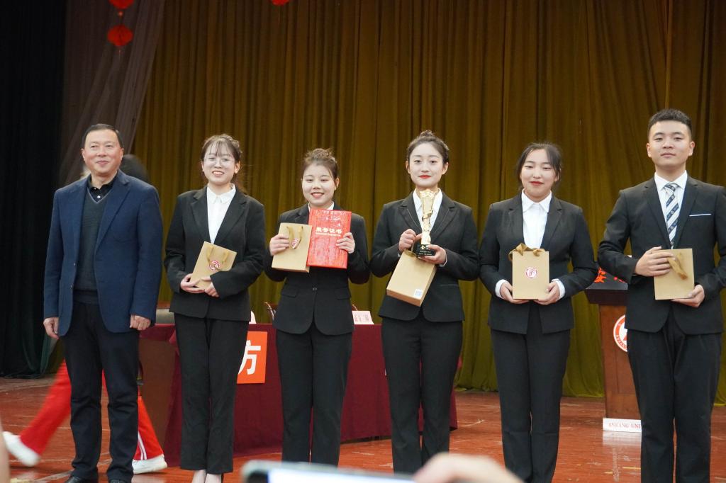 据悉,本届“金雀杯”辩论赛分为初赛、进阶赛、复活赛、复赛、半决赛、决赛五个赛段,共经过22场激烈角逐。最终,教育学院代表队荣获金奖,农生学院代表队获得银奖,文传学院代表队获得铜奖,旅环学院代表队获得优秀奖;王薇薇、冯磊、张伟艺、王晓4位教师荣获“优秀指导教师”称号;陈卓同学荣获“最佳辩手”称号;蔡孟德、徐菲、李念晨、刘家宏、高静、薛鹏、宋红丽、鲜泊杨、李怡萌、于佳彬、王琰坤、程倩文12名同学荣获“优秀辩手”称号;高武玲、路怡鸿2位同学荣获“优秀主席”称号。