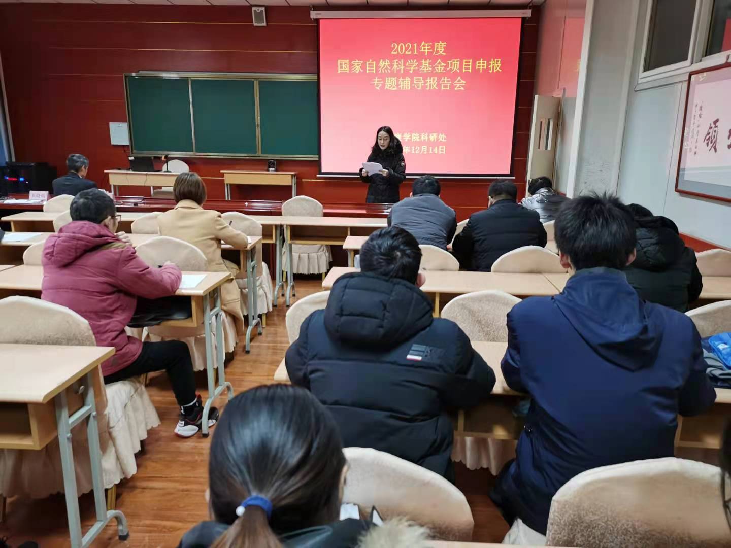 12月14日下午,西北农林科技大学王文龙研究员应邀来我校做了题为“国家自然科学基金新政策解读及撰写技巧”专题辅导报告。各相关二级学院分管科研院长、副高以上职称、全体博士以及第三期培训班全体学员聆听了本次报告,报告会由科研处处长崔晓明主持。
