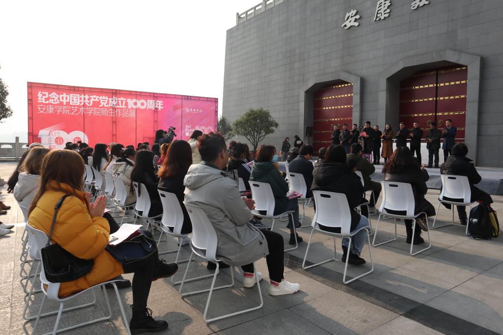 12月20日上午,为迎接即将到来的中国共产党成立100周年,讲好安康故事,展现安康发展成就。由安康市文学艺术界联合会、安康文化投资发展有限公司、安康学院主办,安康学院艺术学院、安康市美术家协会、陕南画院承办的“庆祝中国共产党成立100周年安康学院艺术学院师生作品展”在安康美术馆举办。安康市政协副主席唐纹、安康学院党委副书记胡波、安康市文联常务副主席喻斌、安康文化产业协会会长孙世福、安康文化投资发展有限公司总经理冯亚龙,安康市美协主席李剑平,陕南画院院长章长青、安康学院艺术学院党政领导出席开幕式。艺术学院150余名师生参加了活动,仪式由艺术学院党总支书记樊仁杰主持。