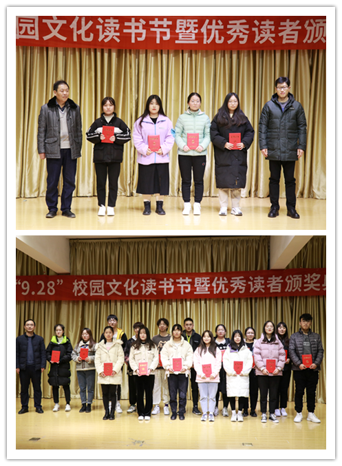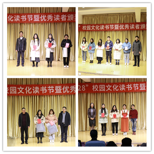 12月20日下午,“9.28”校园文化读书节暨优秀读者颁奖典礼在江北校区1401室隆重举行。党委宣传部、学工部、团委相关负责人,数统学院、文传学院、马克思主义学院、教育学院党总支书记,图书馆党政领导、阅芽读书会和大学生读者协会会员及获奖读者共计200余人参加了本次活动。