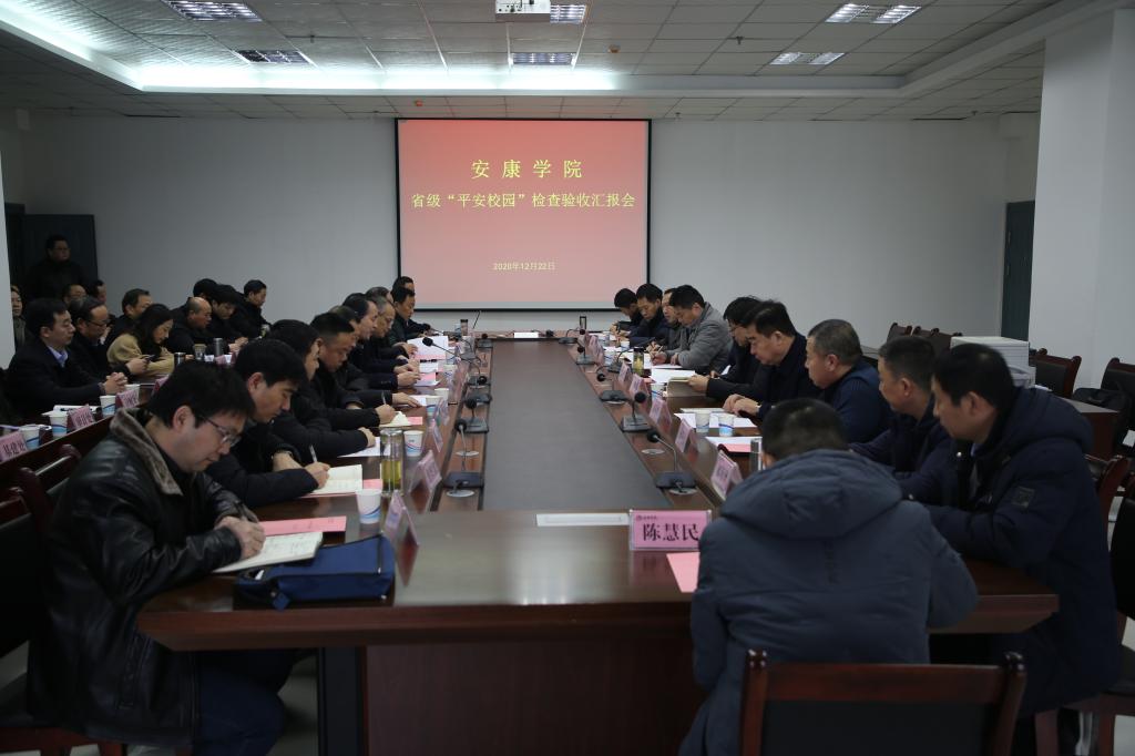 12月22日,“省级平安校园”检查验收组组长、西安理工大学党委副书记马宁一行12人,莅临我校考评验收“省级平安校园”建设工作。学校领导班子成员,安康市公安局经文保支队副支队长熊函山及“平安校园”建设工作领导小组成员单位负责人参加汇报会。汇报会由党委副书记杨行玉主持。