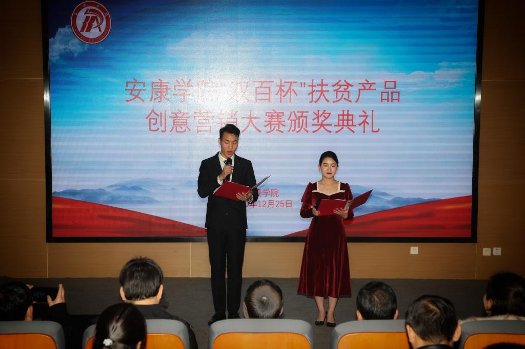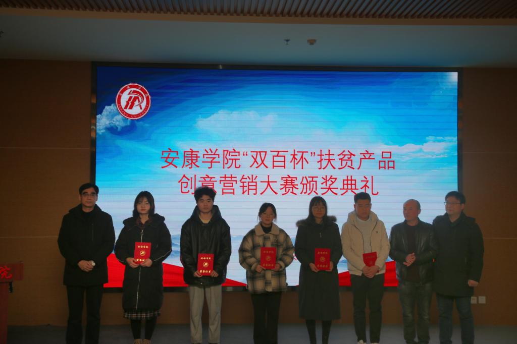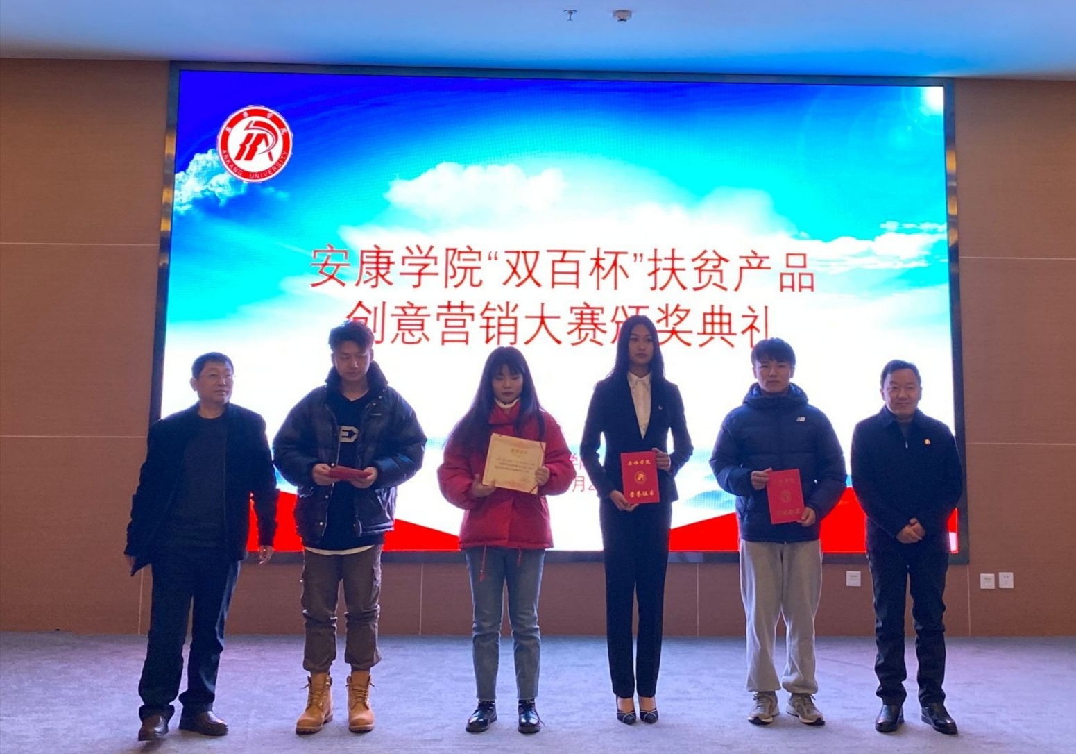 为认真贯彻落实习近平总书记关于开展消费扶贫行动的重要指示精神,充分发挥我校创新创意人才优势,助力帮扶地区特色产业持续发展和巩固脱贫攻坚成果,12月25日,我校在江北校区图书馆学术报告厅举办安康学院首届“双百杯”扶贫产品创意营销大赛颁奖典礼。党委副书记胡波,副校长钟生海,白河农业局总农艺师金剑,民主镇副镇长张文,6家企业代表,学校相关职能部门和二级学院负责人以及获奖团队代表参加了本次活动。