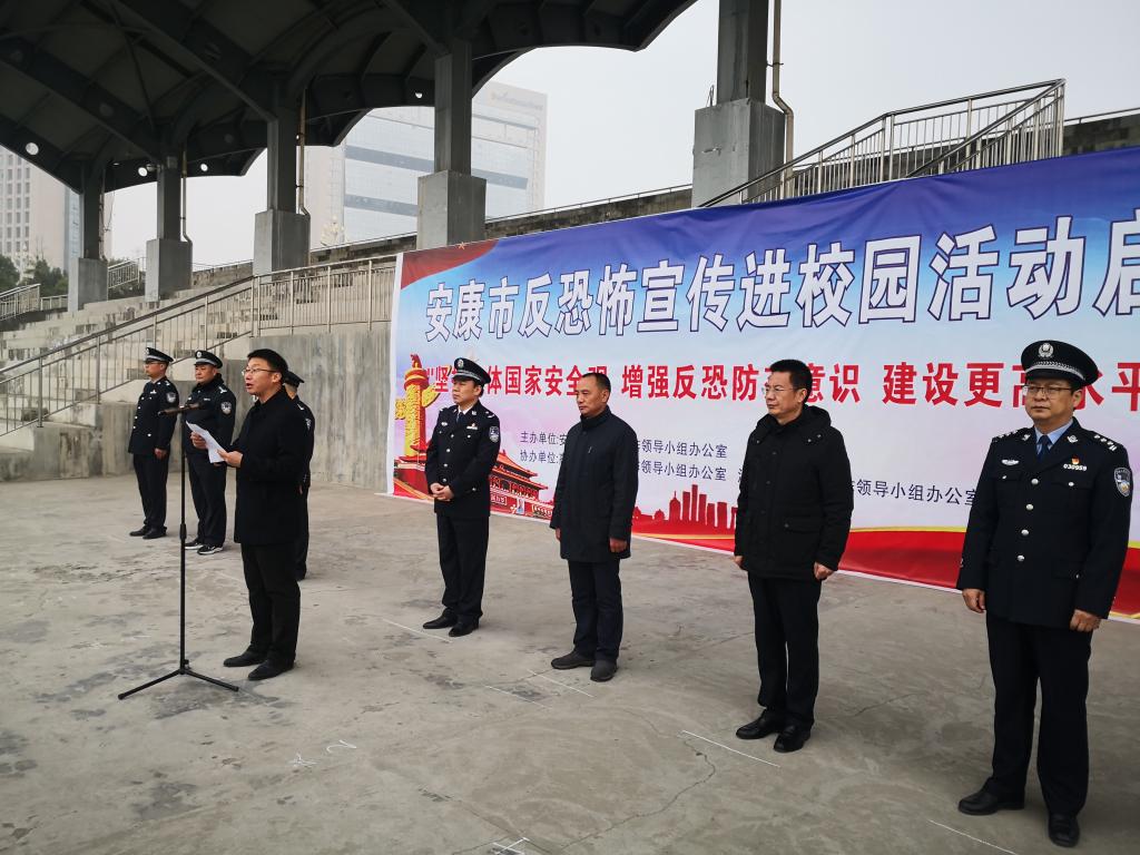 为切实增强全民反恐防范意识,打好反恐人民战争,有效应对暴恐袭击事件,加强平安安康建设,根据国家反恐办、省反恐办《关于组织反恐怖宣传教育进校园活动的通知》要求,12月28日上午,安康市反恐怖宣传进校园活动启动仪式在我校江北校区操场举行。市反恐办、市公安局、市教体局、安康学院、安康职业技术学院相关负责人及学生代表共计500余人参加了启动仪式。启动仪式由市公安局反恐支队支队长张涛主持。