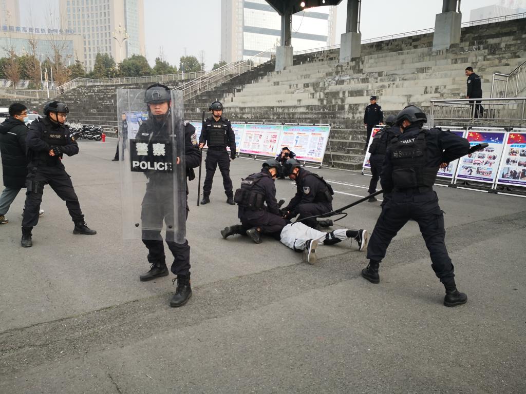 启动仪式上,张涛宣读了《安康市反恐怖宣传教育活动工作方案》,对全市反恐怖宣传教育工作进行部署;市教育体育局副局长杜宗辉就教育系统、全市各院校开展反恐怖宣传教育活动进行了安排;张东红副校长代表学校就贯彻落实反恐怖宣传教育工作做了表态发言,安康市反恐办主任、市公安局党委委员、正县级侦查员李友良宣布启动仪式,汉滨分局反特巡大队进行了暴恐袭击事件处置演练展示。