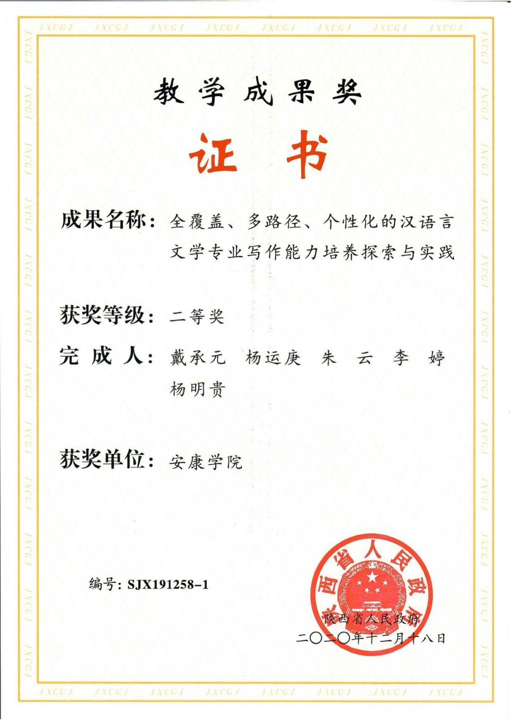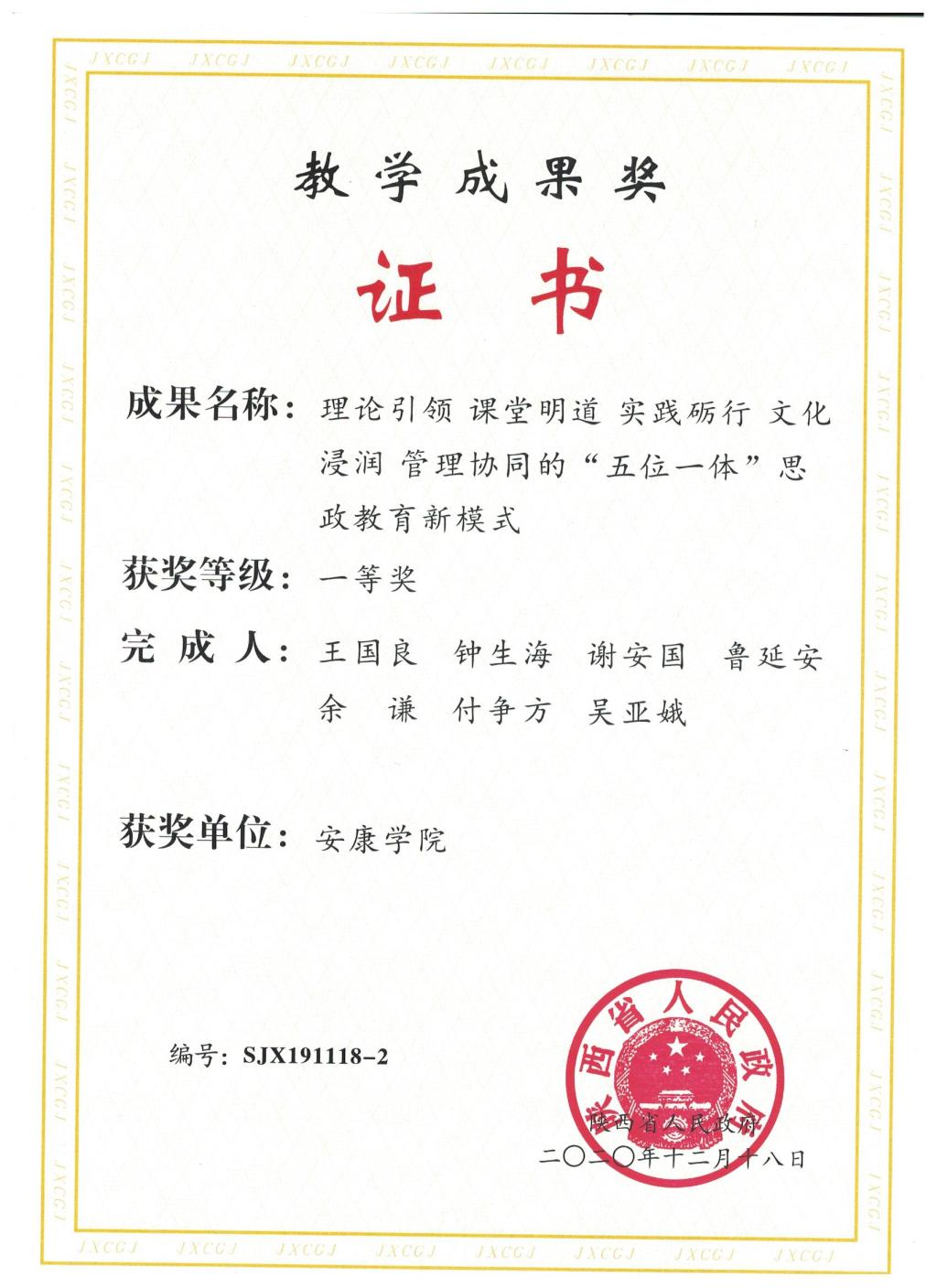 相关链接:陕西省人民政府办公厅关于表彰2019年高等教育教学成果奖获奖项目的通报_陕西省人民政府