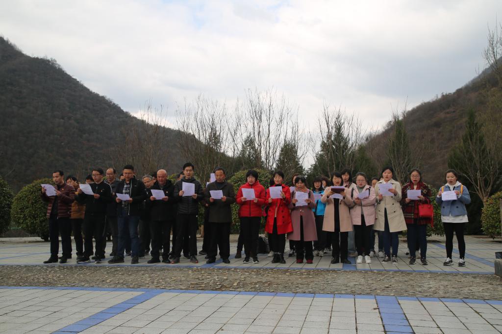 满怀对革命先辈的敬仰,在革命纪念碑下,全体党员同志饱含深情地朗诵诗歌《红旗颂》,并在鲜红的党旗面前庄严宣誓,重温了入党誓词。