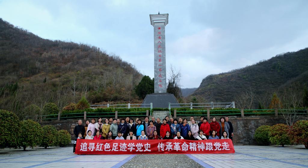 在陕南人民抗日第一军烈士纪念碑前,紫荆镇讲解员讲解了陕南人民第一军的光辉历史。马克思主义学院党总支副书记王晓霞以“革命劲旅——陕南人民抗日第一军”为题为大家上了一堂生动感人的党史课。通过党史学习,大家了解了陕南人民抗日第一军的成立、发展及光荣战绩。一个个感人至深的故事,一个个鲜活的名字,折射出一个政党光荣的历史,记载着伟大的共产党人为民族独立和人民解放走过的艰辛道路,让大家重温了过去的艰苦岁月,感受了革命先辈的奉献情怀。