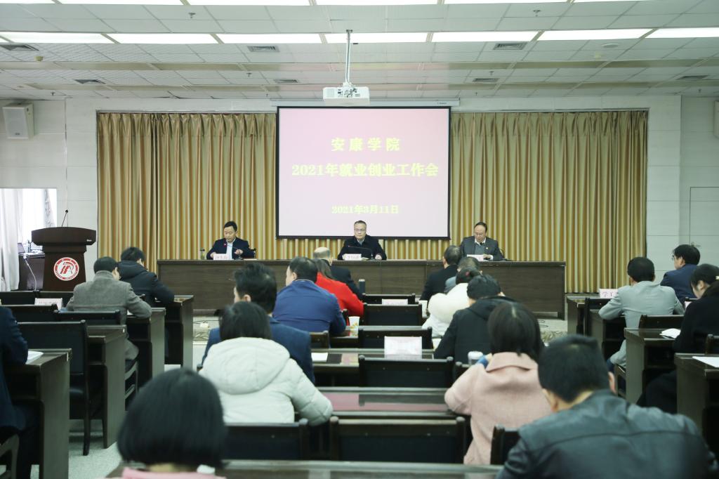 为贯彻落实党中央、国务院“六稳”“六保”决策部署以及上级有关大学生就业创业工作的文件精神,推进学校就业创业工作,3月11日,学校在图书馆六楼报告厅召开了安康学院2021年就业创业工作会议。学校党委书记、校长丁巨涛,党委副书记杨行玉,副校长钟生海,招就处、教务处、学工部、团委等部门负责人,二级学院党总支书记、院长、学工办主任、毕业班辅导员和受表彰的先进个人参加了本次会议。会议由杨行玉主持。