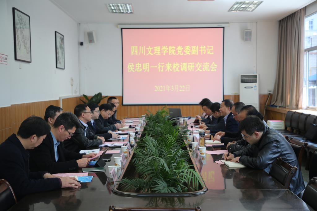 侯忠明对我校近年来改革发展所取得的成绩表示赞赏,并简要介绍了四川文理学院近年来建设发展情况,期望双方能将进一步深化交流与合作,共同谱写地方本科高校发展新篇章。