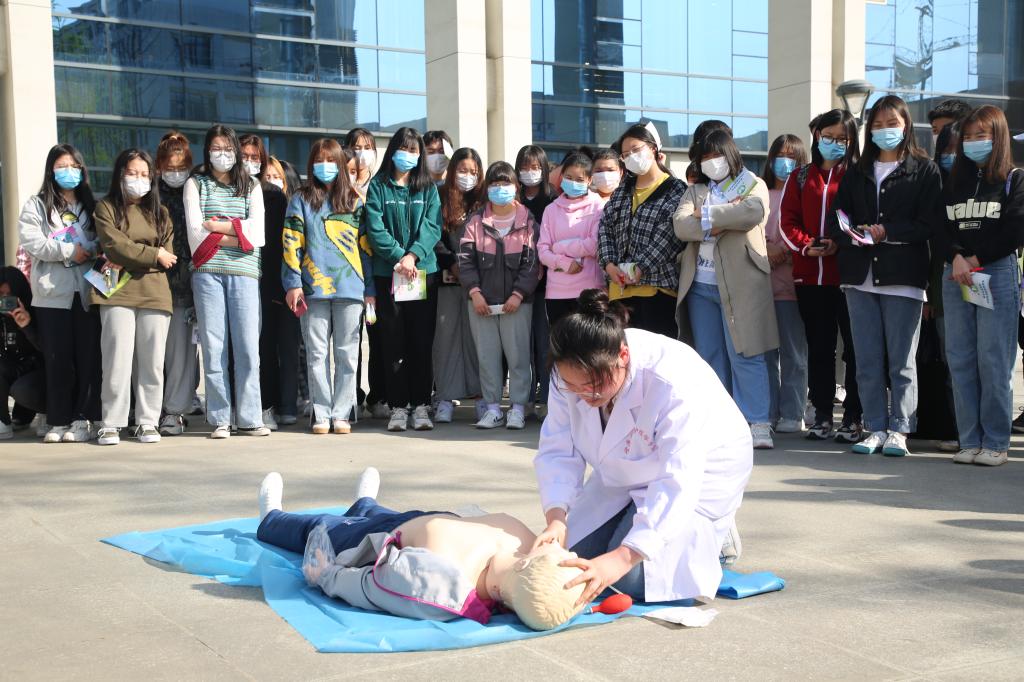 旅环学院环境生态工程2020级1班王心雨代表学生志愿者,倡导广大学生要从自我做起,提高健康意识,远离结核病。刘芙蓉做了《终结结核流行,自由健康呼吸》的专题讲座,从肺结核的基本知识、传播途径、防治方法及政策等进行了全面解读,帮助大家正确认识结核病。我校医学院教师陈翀宇为大家讲解了心肺复苏(CPR)操作技能并做了现场演示,重点讲解实际救助中,如何抓住最有效的“黄金4分钟”,师生们现场观摩,积极互动,踊跃体验。