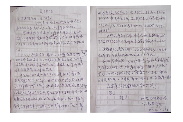 我这次来学校给赵力办理有关学费手续以及去年儿子来学校填表等手续之事,我们全家非常感动。你校全心全意地为学生服务的理念落实在细微之中。