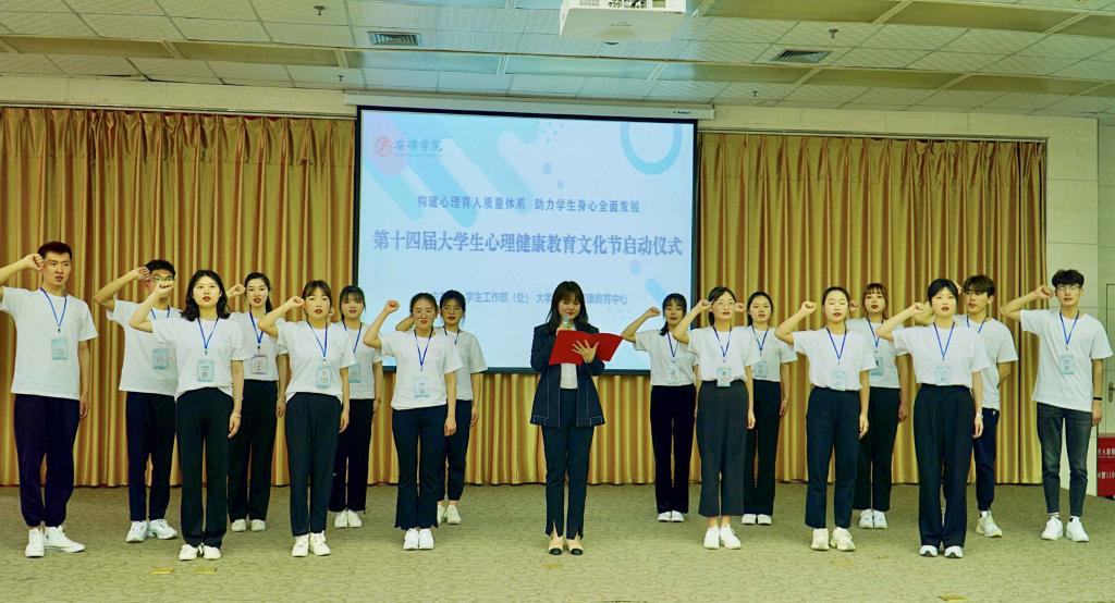 大学生心理健康教育中心专职教师唐璟瑜领读了安康学院心理健康教育文化节誓词。