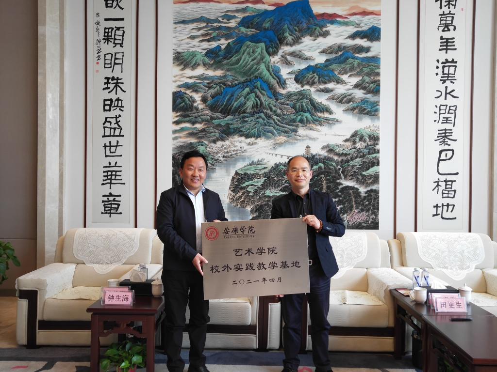 最后,钟生海分别为两个场馆授牌,希望双方能以本次签约为契机,加强学校与两个艺术场馆在学科建设、人才培养、艺术实践、实习就业、公共艺术教育等方面深度合作,通过深入有效的校馆合作为我校应用型人才培养提供更多的实践平台和机会,提升人才培养质量,更好地服务区域经济社会发展。