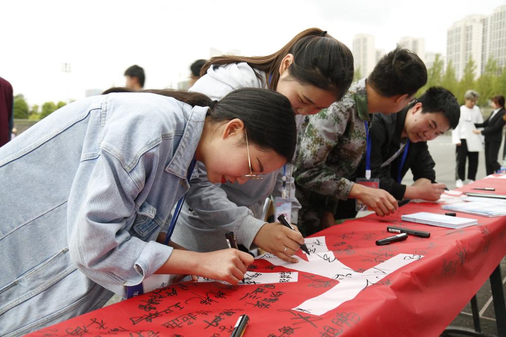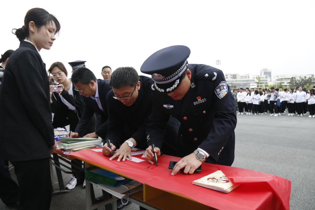 活动中,参会领导与广大师生、公安民警一起现场观看了反邪教主题宣传展板,积极参与“对邪教说不”签名扫码活动。