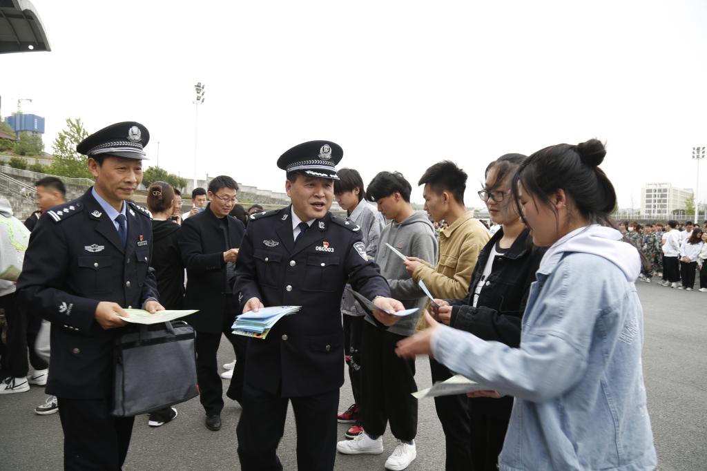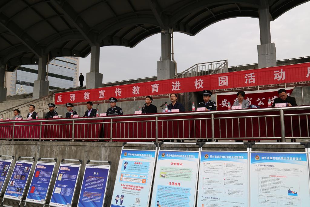 为提高我校广大师生辨邪、识邪、防邪能力,认真贯彻落实公安部、教育部工作部署,4月15日下午,在第六个全民国家安全教育日到来之际,由安康市公安局、安康学院联合举办的“反邪教宣传教育进校园”活动在我校江北校区举行启动仪式。市公安局党委委员、副局长崔锐利,国保支队支队长杨斌,经文保支队支队长黎安平,高新分局党委委员、副局长范立,安康职业技术学院副院长瞿德明出席启动仪式。我校副校长张东红出席活动并讲话,仪式由我校党委委员、宣传、统战部部长鲁延安主持。保卫处处长王开忠、学工部副部长钟泽斌、马克思主义学院党总支书记田静、旅环学院党总支书记张立虎,安康市公安局、高新分局、汉滨分局部分公安干警,安康职业技术学院、安康学院约500余名干警和师生参加了此次活动。