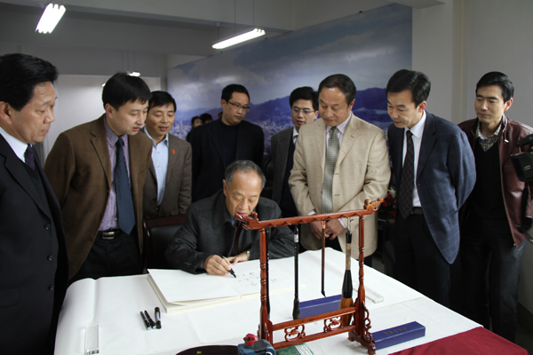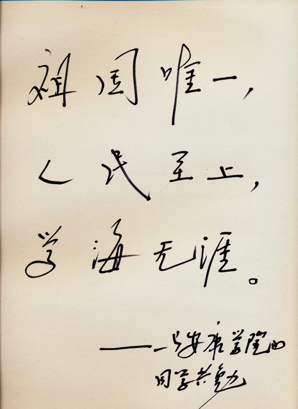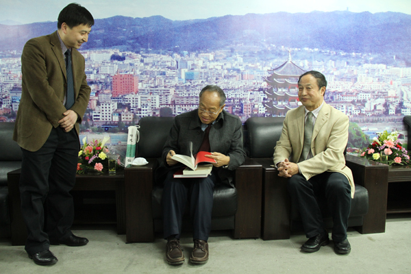 报告会前,李肇星与我院领导进行了亲切会谈。党委书记杨涛、院长王兴林向李肇星简要介绍了我院的基本情况,并代表学院向李肇星赠送了我院陈少默纪念馆制作的《陈少默书法作品集》和我院作家李春平创作的小说《步步高》、《领导生活》。李肇星说,作为安康地区唯一的高等学府,安康学院对于地方经济社会发展具有重要意义,希望学院能够发扬特色,办好教育事业,培养出更多优秀的人才。李肇星还欣然题词——“祖国唯一,人民至上,学海无涯——与安康学院的同学共勉”。