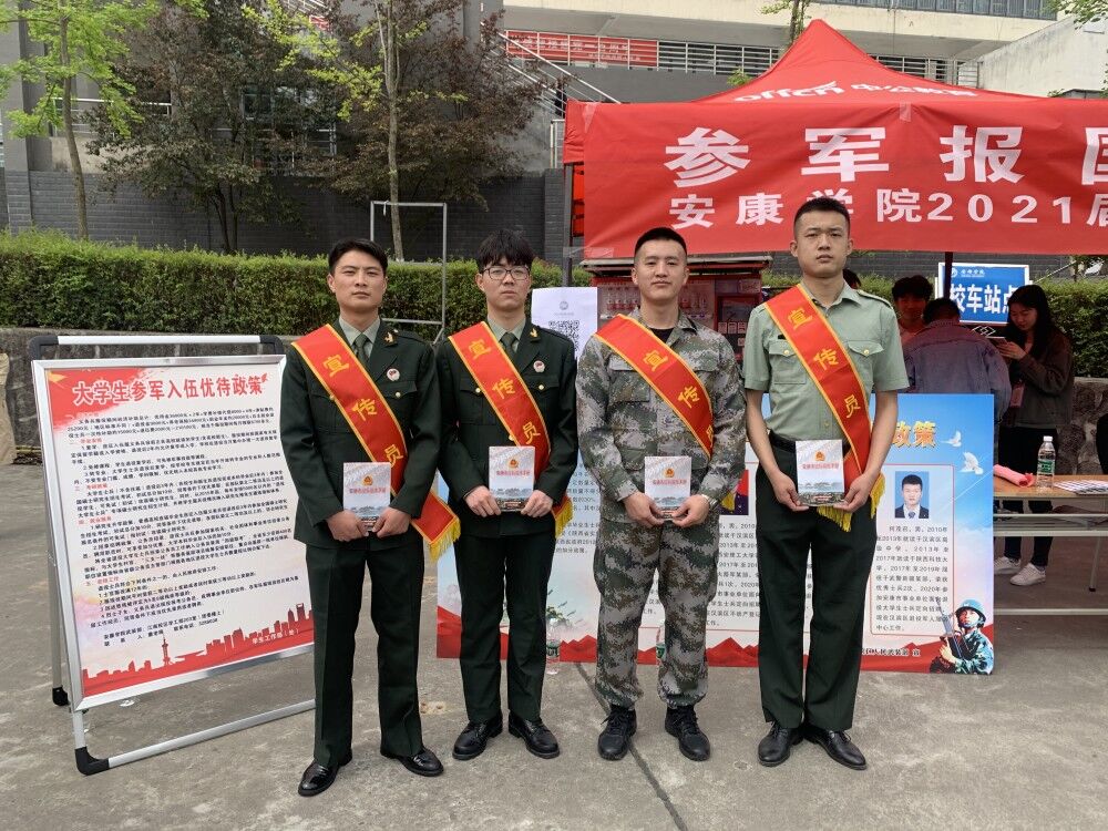 本次宣传得到了安康军分区及汉滨区人民武装部的大力支持,区人武部部长孟高峰、政委蒋华成、副部长艾宗强专程来到现场,与我校武装部工作人员和退伍学生共同开展应征宣传和咨询。