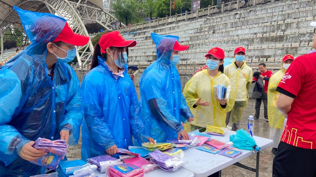 赛前,我校志愿者在江南校区图书馆前集合,统一着装,到达比赛指定工作岗位,严整待命。比赛过程中,即使谷雨纷纷,志愿者们仍然热情满满,各司其职,有条不紊的完成志愿服务工作。