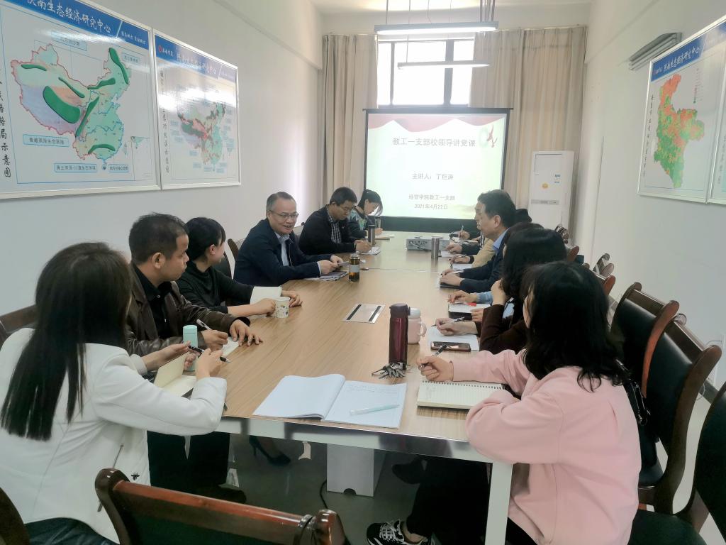 近日,党委书记、校长丁巨涛以普通党员身份参加经管学院教工一党支部党史学习教育专题会,并为全体党员上了一堂生动的党史教育专题党课。经管学院领导班子成员列席参加专题党课学习。