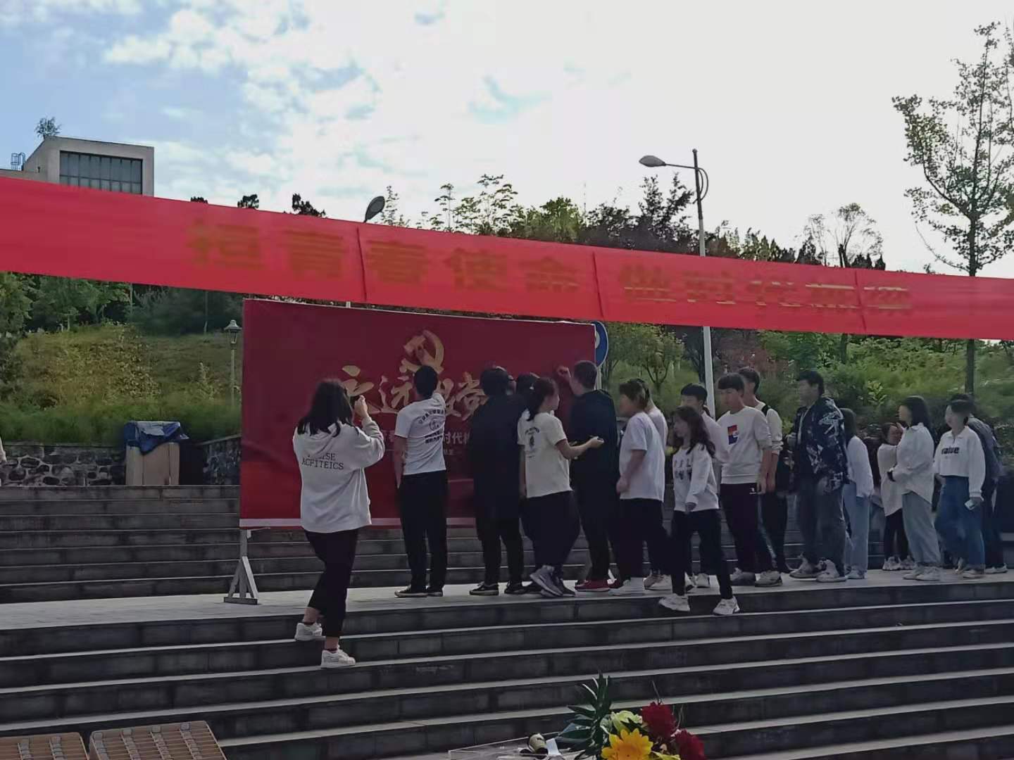 全体学生在活动横幅上郑重签名,对认真参与活动、提升自我作出承诺。