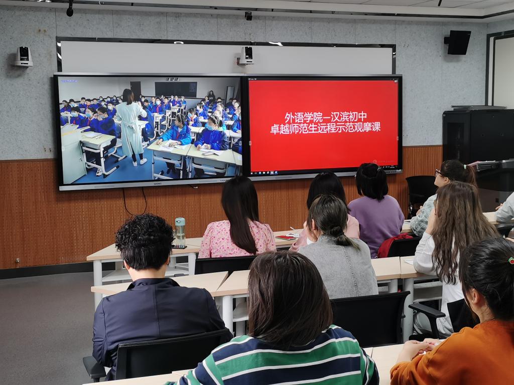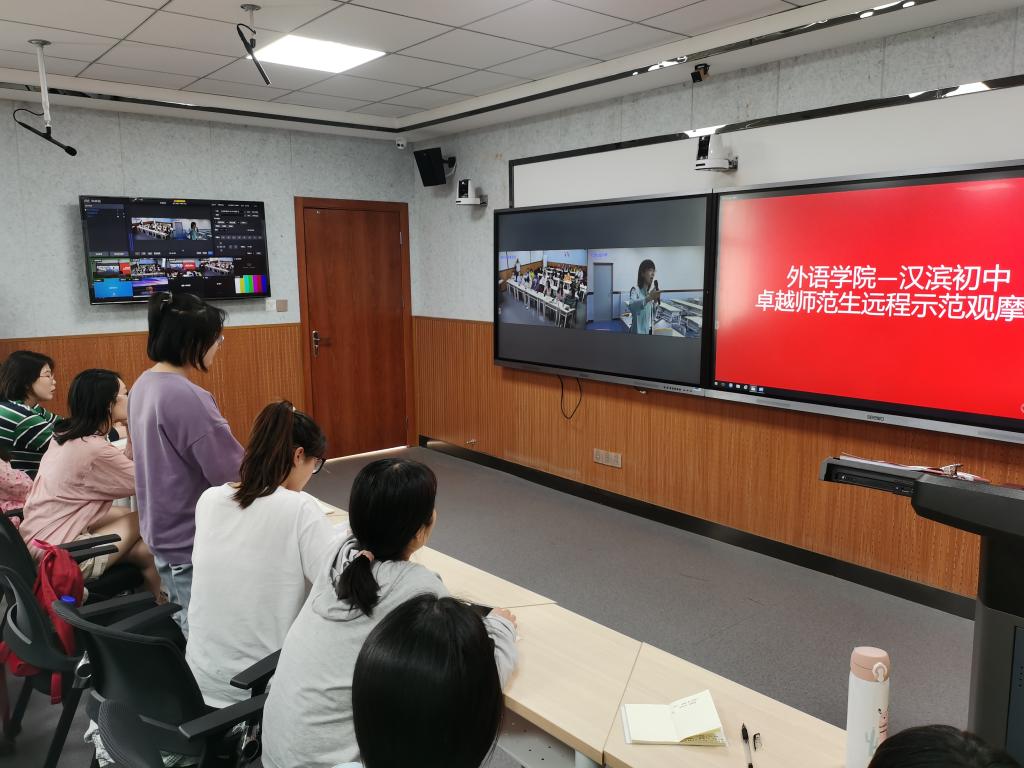 为进一步提升师范生实践教学能力,探索校校协同育人机制,切实推进卓越师范生培养工作,4月28日下午,我校外语学院首届英语教师卓越班依托师范生职业技能训练中心录播互动平台,远程观摩了汉滨初中省级英语教学能手张静的英语示范课。