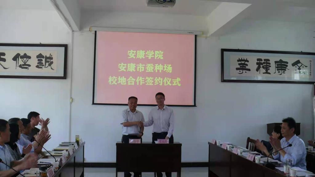 会上,张东红与张保华分别代表校企双方签订了《安康学院与安康市蚕种场校地合作协议书》。
