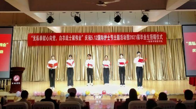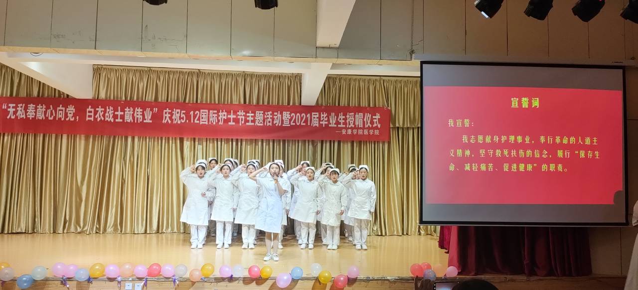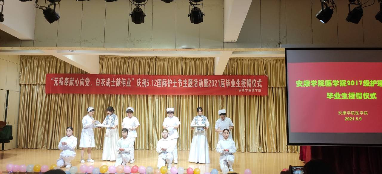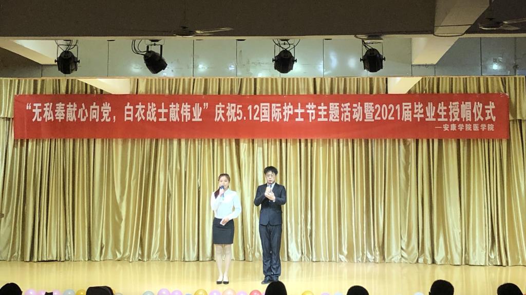在第110个“5.12”国际护士节到来之际,5月9日晚,我校医学院在江北校区多功能厅举行了“无私奉献心向党,白衣战士献伟业”——庆祝“5.12”国际护士节暨授帽仪式活动。我校党委副书记、纪委书记、监察专员安永强出席活动,学校附属医院安康市中心医院、安康市中医医院和安康市人民医院相关人员以及我校团委副书记张慧、医学院党政领导、师生200余人参加了此次活动。