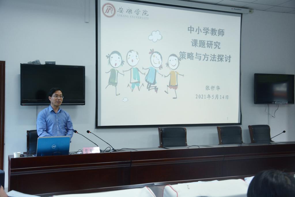 5月14日下午,我校外语学院副院长张哲华应邀为镇坪县高级中学全体教师举办了题为《中小学教师课题研究策略与方法探讨》的专题讲座,并出席安康市第七批市级学科带头人培养对象曹国琴工作坊启动仪式。活动由镇坪县高中校长杨顺主持。