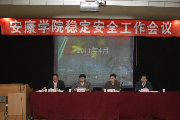 4月1日下午,学院2011年稳定安全工作会议在1号教学楼六楼报告厅召开。学院领导杨涛、胡鸿晓、闵小平、杨行玉出席会议,各院系主任、党总支书记、各部门负责人及各院系办公室主任、学工办主任,全体辅导员及和受表彰的先进个人、学生护校队队员共100余人参加了会议。会议由党委副书记胡鸿晓主持。