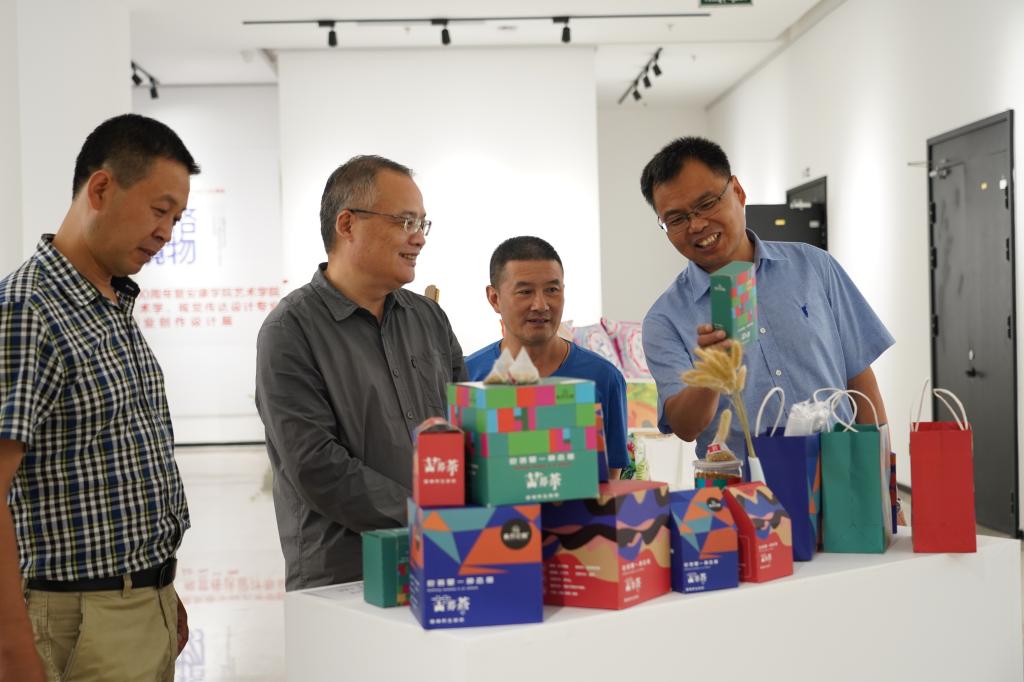 观展过程中,丁巨涛与艺术学院师生就毕业设计的创作理念和构思、作品打样、产品的制作工艺、作品的孵化和规划项目的落地等方面的问题进行了深入交流;对本次毕业创作(设计)作品所展现的时代精神和结合国家政策战略的创作给予了高度评价,并要求师生创作时进一步坚持地域特色、服务地方,为培养我校具有鲜明特色的应用型艺术人才目标而努力。