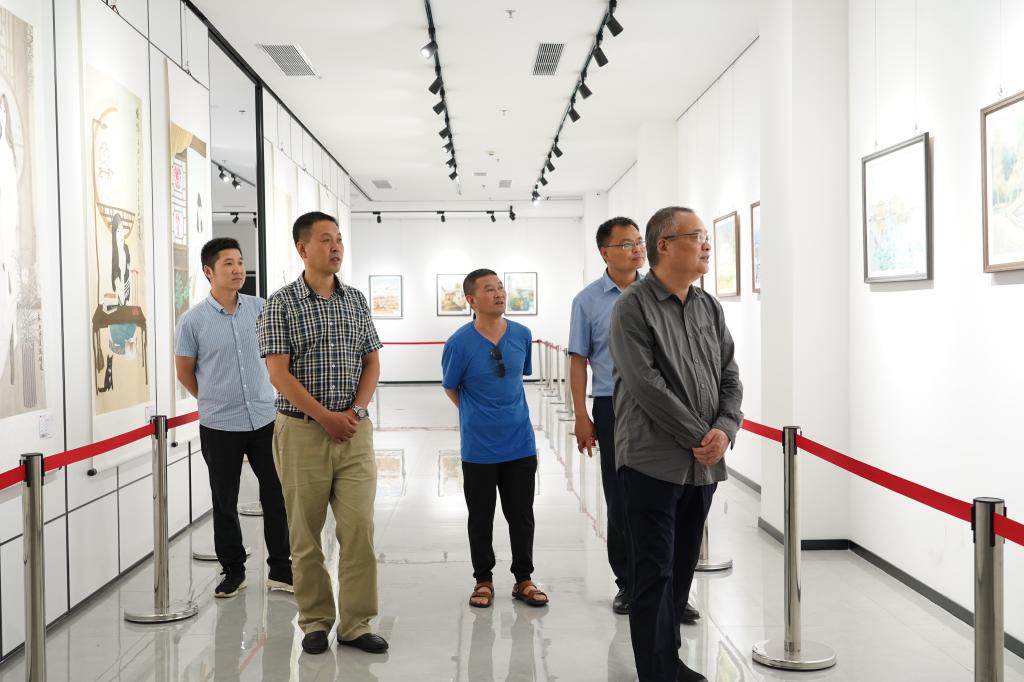 6月19—25日,艺术学院2021届美术学/视觉传达设计专业毕业创作展分别在安康市美术馆一楼展厅和二楼展厅展出。校党委书记、校长丁巨涛在艺术学院党总支书记樊仁杰、副院长成党伟陪同下参观指导工作。
