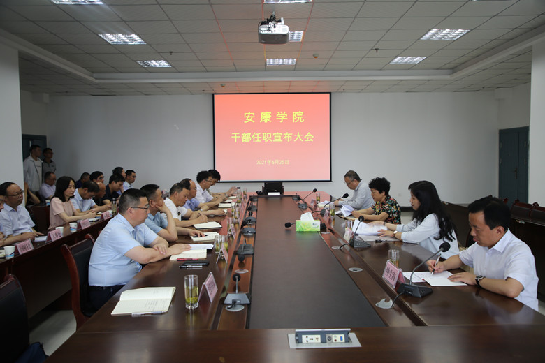 6月25日上午,我校在江北校区逸夫科技楼会议室召开干部任职宣布大会。陕西省委教育工委副书记陈乃霞,省委组织部宣教干部处处长张清,学校领导、党委委员,职能部门主要负责人、二级学院党政负责人参加了大会。会议由学校党委书记丁巨涛主持。