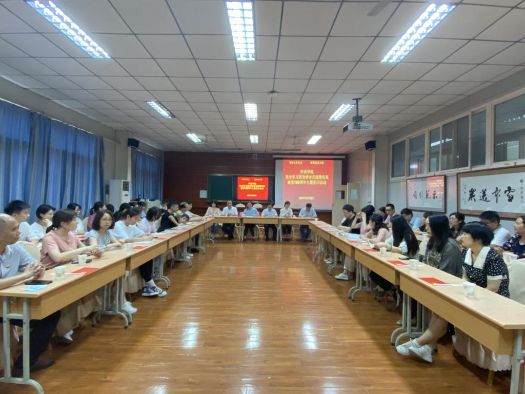 为深入开展党史学习教育,庆祝建党100周年,我校外语学院党总支于6月25日举行党史学习教育研讨交流暨庆祝建党100周年主题党日活动。外语学院领导班子、各系主任、各党支部书记、全体师生党员参加了会议。活动由党总支书记肖红香主持。