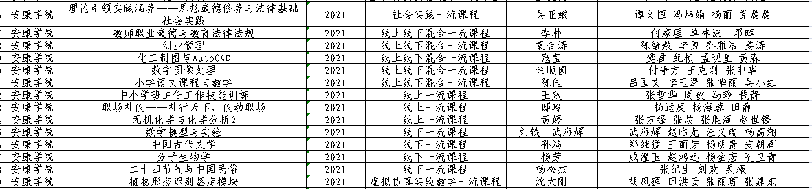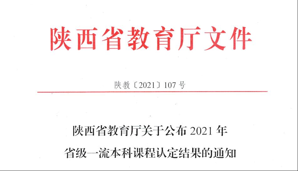 7月1日,陕西省教育厅发布了《2021年省级一流本科课程认定结果的通知》,我校14门课程成功获批,其中,线上一流课程3门、线下一流课程4门、混合式一流课程5门、社会实践一流课程1门、虚拟仿真实验教学一流课程1门。截止目前,我校共获批国家级一流课程1门,省级一流课程25门,实现了五类“金课”全覆盖。