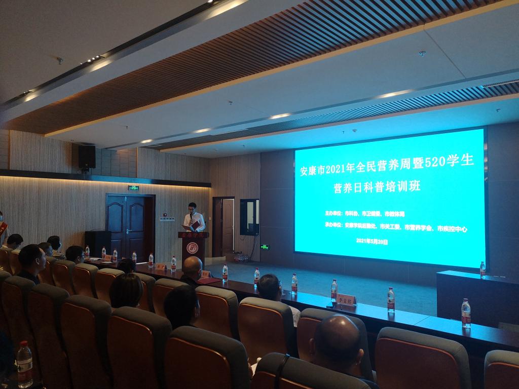 5月20日,2021年安康市全民营养周暨520学生营养日科普培训在安康学院江北校区图书馆报告厅举行。活动由安康学院、安康市科协、安康市营养学会联合举办。现场发放了《新冠肺炎防控期间营养膳食指导(漫画版)》和《中国居民膳食指南(2016)》《成人一日膳食计划》等科普资料。通过培训提升了后勤饮食工作人员和医务人员的营养素养,加强相关从业者对校园营养健康管理知识的科学认识。医疗保健服务中心联合饮食中心,按照时令推荐健康菜谱,为广大师生宣传膳食营养健康知识,营造食堂营养健康氛围,指导师生员工合理膳食,提高师生健康生活方式行为能力。