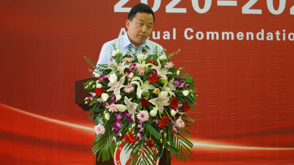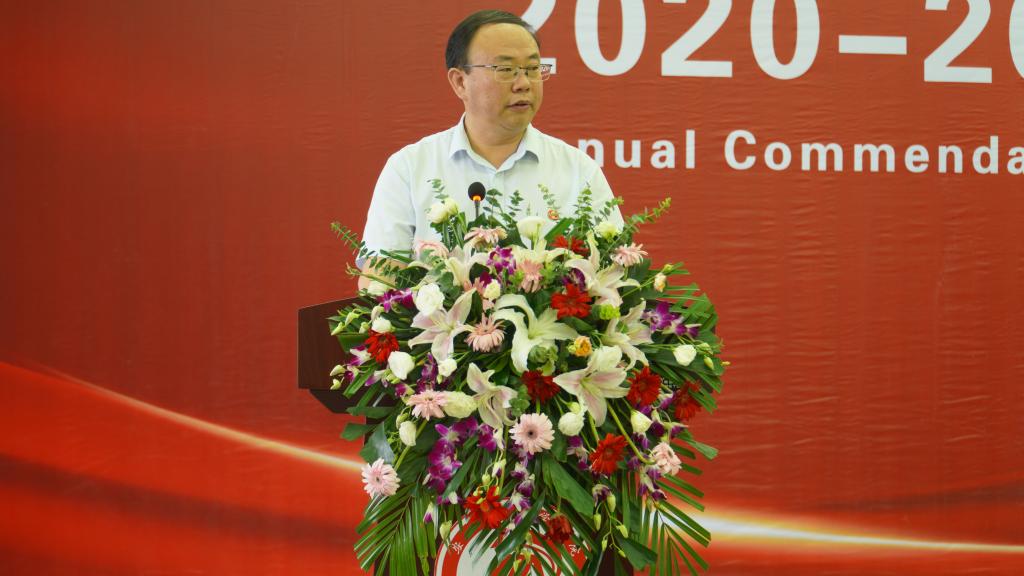 钟生海在讲话中代表学校向受表彰的先进集体和个人表示祝贺,同时向耕耘在教育教学、学生工作一线的教师表达了衷心的感谢。他强调,立德树人是高校立身之本,学校始终坚持以习近平新时代中国特色社会主义思想为指导,牢记为党育人、为国育才的初心使命,着力培养德智体美劳全面发展的社会主义建设者和接班人。钟生海结合学习贯彻习近平总书记在中国共产党成立一百周年大会上对新时代中国青年的要求,向同学们提出了四点希望:一是要志存高远,厚植爱国情怀。希望同学们立大志、明大德、成大才、担大任,做扎根基层的奉献者,在投身中国梦的伟大实践中建功立业。二是要勤学敏思,培养科学思维。希望同学们不负韶华,勤奋好学,以马克思主义立场观点方法培养科学思维,增强观察、明辨和解决问题的能力。三是要勇于超越,矢志不懈奋斗。希望同学们不畏艰险,追求卓越,有敢为人先的锐气和探索真知的勇气,不断在学习工作中取得新突破。四是要付诸行动,练就过硬本领。希望同学们能够把书本知识和实践锻炼有机结合,自觉投身于社会实践,提升实干能力,争做“强国有我”的新时代青年。