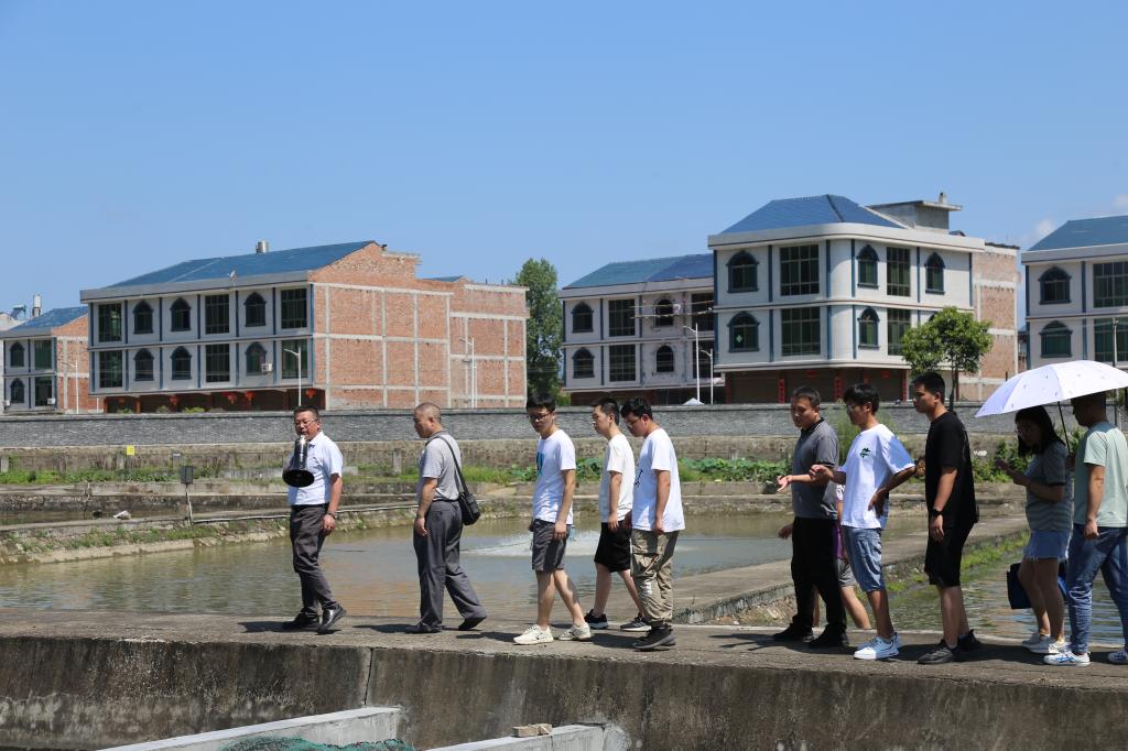 在安康水产行业种苗繁育及技术支持的核心基地——汉滨区安康水产试验示范站,指导教师吉红就示范站自2007年建站以来秉承服务安康地方经济发展,助力渔业产业体系建设的理念,贯彻教学科研、人才培育、成果转化的协同发展,有效助力安康区域渔业产业产值从2亿到20亿跨越式发展所取得的系列成就进行了介绍,使参训学员大开眼界。在汉阴县涧池镇,总规划建设200余亩的永丰生态家庭农场,该农场实施鱼类繁育、稻虾养殖、果蔬种植、观光旅游于一体的生态渔业发展模式,让全体参训学员耳目一新。在汉阴县双乳镇,以支部共建、苏陕协作牵头成立的村莲农专业合作社,规划建成了700余亩的荷虾共养、稻虾共养小龙虾养殖繁育基地,通过集约化管理,实现了亩产值9000余元,净利润5000元的高效生态发展模式。果蔬满架,荷香四溢,绿波翻浪,鱼虾欢腾,游人如织的景象让学员们看到了绿色生态发展模式的大好前景。